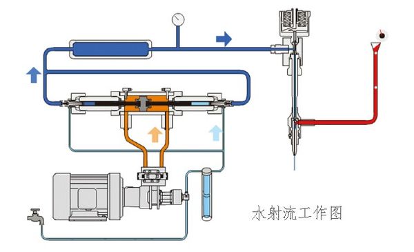 水射流切割技術(shù)又稱超高壓水刀。當(dāng)水被加壓至很高的壓力并且從特制的噴嘴小開(kāi)孔(其直徑為0.1mm至0.5mm)通過(guò)時(shí), 可產(chǎn)生一道每秒達(dá)近千公尺(約音速的三倍)的水箭,此高速水箭可切割各種軟質(zhì)材料包括食品, 紙張, 紙尿片, 橡膠及泡棉,此種切割被稱為純水切割。 而當(dāng)少量的砂如石榴砂被加入水射流中與其混合時(shí), 所產(chǎn)生之加砂水射流, 實(shí)際上可切割任何硬質(zhì)材料包括金屬, 復(fù)合材料, 石材及玻璃. 超高壓水刀也可使用于各種不同的工業(yè)表面處理應(yīng)用如船身清洗及汽車(chē)噴漆設(shè)備清洗。超高壓水的形成關(guān)鍵在于高壓泵。70Mpa以下高壓泵技術(shù)已比較成熟,70Mpa以上的超高壓水國(guó)內(nèi)仍需使用增壓器增壓。